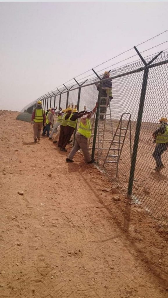 شبك معدني مرتفع يستخدم كحاجز أمني في مشروع حكومي